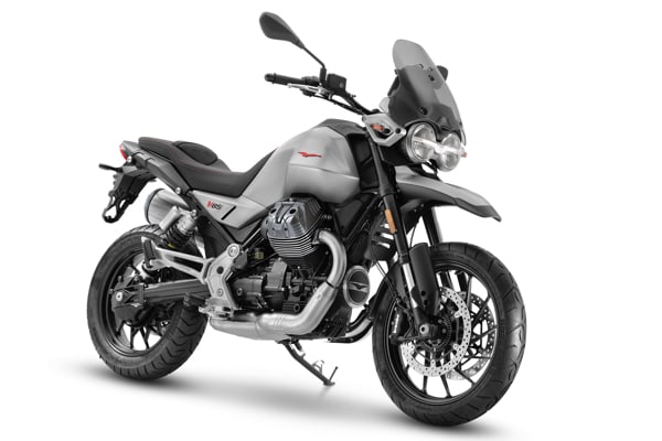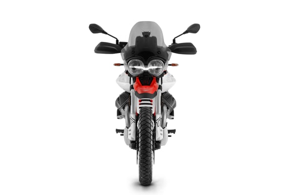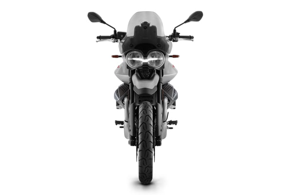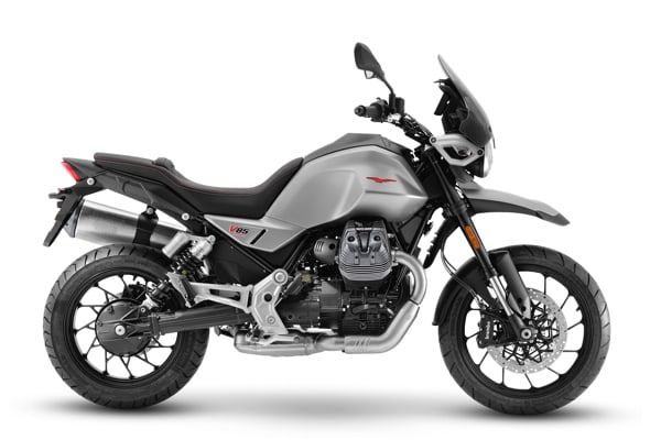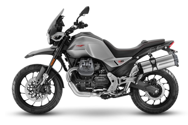 Moto Guzzi V85 Strada. The Moto Guzzi V85 Strada embraces the core values of the V85, including lightness, practicality and simplicity, and takes them to new heights. This makes it the perfect 'practical machine', excelling at daily city rides and excursions on both urban roads and out of town. Agile and comfortable thanks to its upright riding position, the V85 Strada is characterized by a minimalist, elegant and distinctive styling, leaving the rear end slim and streamlined, without grab handles, and abandoning the skid plate and handguards typical of enduro bikes. However, these components are available as accessories, giving riders the option to customize the V85 Strada according to their preferences. The equipment also features new aluminium alloy spoked wheels enhancing lightness and agility, and these are paired with road-treaded tyres. This has a positive effect on handling, with the Moto Guzzi V85 Strada weighing in at 4 kg less than the V85 TT version. The road-oriented design is further emphasized by the low mudguard on the front wheel and the stylish Nero Isola and Grigio Brera colours.