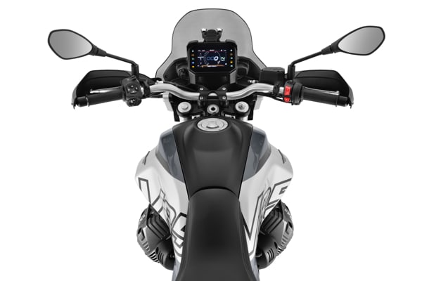 New instrument panel with 5-inch TFT display. Sitting on the motorcycle, the rider benefits from a completely redesigned instrument panel: the new, larger 5-inch TFT colour display allows better visualization of all trip parameters. The handlebar switches are also new, having also undergone an overhaul, with both electric switch-cubes redesigned to provide more straightforward and intuitive access to all functions, including cruise control.