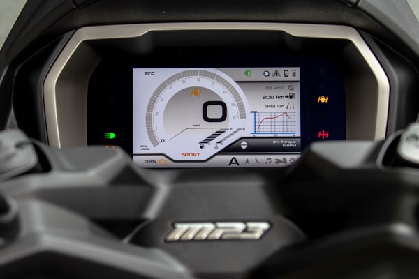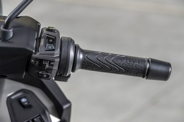 From the driver's seat, the attention to detail and extreme rationalisation of the controls is immediately apparent: the brand new 7” full colour TFT display is at the centre, the largest in the three-wheeled scooter segment, whereas the handlebar controls have been completely revamped in line with motorcycle logic, all to the advantage of functionality and ergonomics. The other controls are positioned on the dashboard, which has also been refined with the goal of creating a functional environment, carefully studied to be user friendly, exactly like the dashboard of a luxury car.