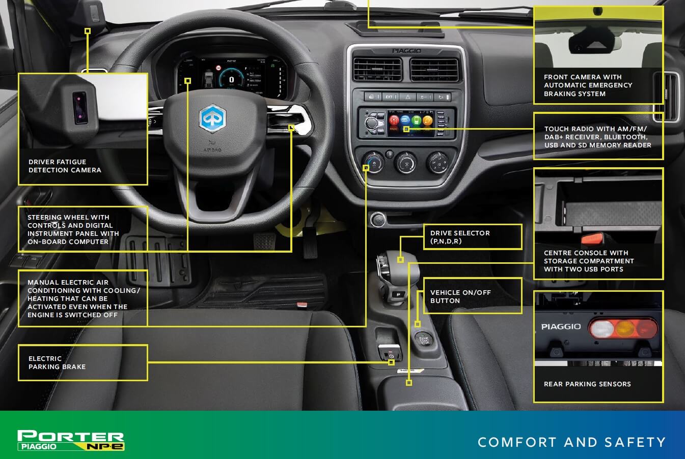 The Porter NPE is equipped with the most advanced and up-to-date safety systems, in accordance with European Regulation GSR 661/2009/EC.: