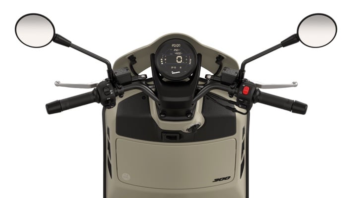 The adoption of a new LCD instrumentation allows a thorough range of trip information to be displayed (maximum speed, average speed, current consumption, average consumption, range, and battery charge state), as well as all the notification relative to calls, messages and music, if the vehicle is connected to the smartphone using the VESPA MIA (available as a separate accessory). It comes standard with a USB port, located in the storage compartment in the leg back shield, whereas the spacious under-seat compartment has a mat. On the safety front, it comes standard with ASR electronic traction control and an ABS anti-lock braking system.