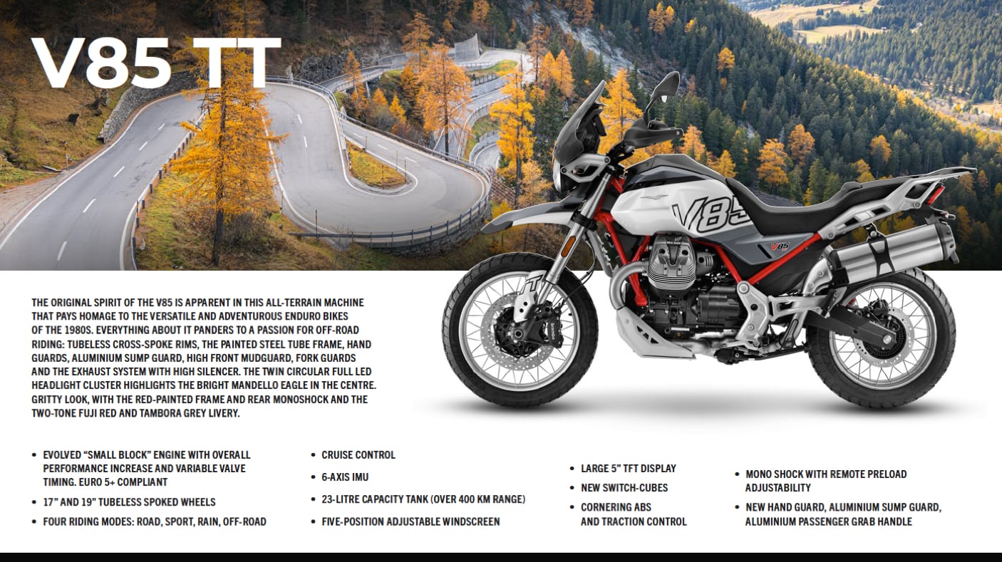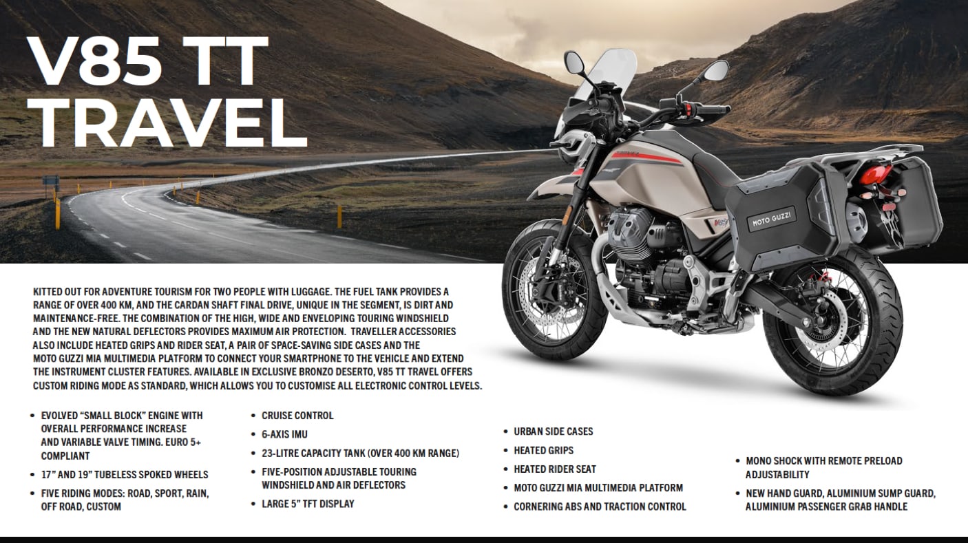 February 2024 (G.T.) – Here a quick glance about motorcycles and related accessories (vehicle and rider) taken from the new 2024 Moto Guzzi range brochure, to offer a concise overview of the models and their main features and, above all, to inspire motorcyclists in their choice, and with a great desire to get back the saddle. And watch out for the beginning of the year promotions! (To discover on the Moto Guzzi website in your countries).