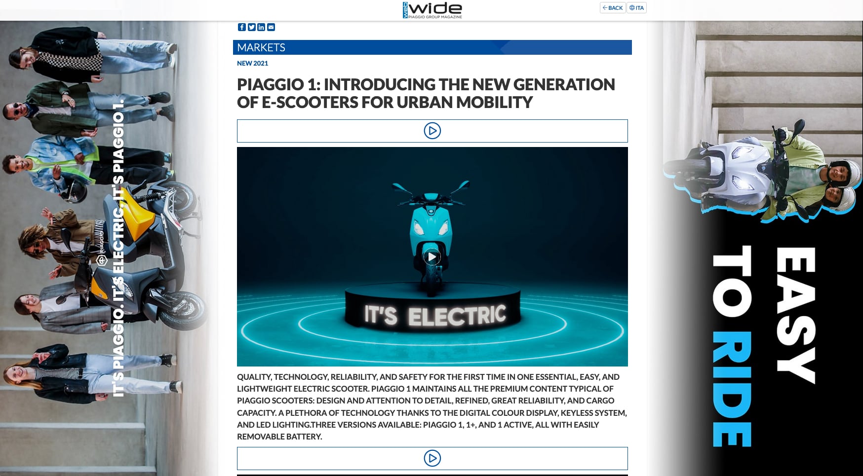 PIAGGIO 1. Piaggio 1 combines the winning features of the latest e-scooter - agile and lightweight for urban commuting as well as minimalist and practical - with the quality and reliability of Piaggio scooters.