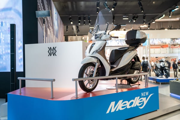 Piaggio Medley combines the agility of an urban vehicle with the dynamic performance of a high wheel model and the comfort and loading capacity of a big GT scooter: the perfect formula for all-round mobility is presented at EICMA 2019 in a totally updated guise, now even more dynamic, high-performance and technological.