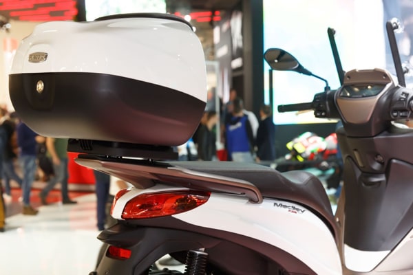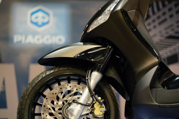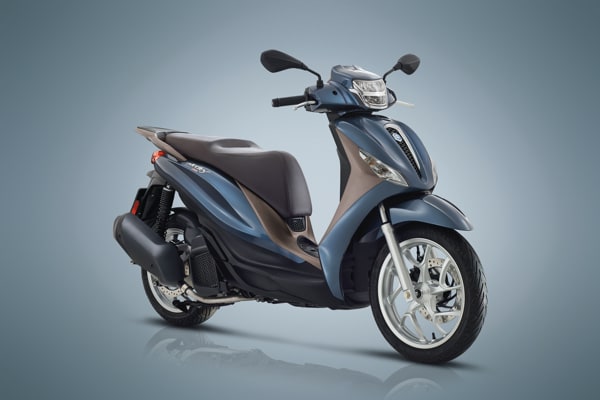 Piaggio Beverly 350 Tourer, the new flagship in the Beverly range, comes as standard with the practical and sporty tinted top fairing and spacious 36-litre top box which matches the vehicle and comes complete with backrest to match the saddle. The equipment also includes the Piaggio MIA connectivity system, thanks to which a smartphone can be connected to the vehicle via Bluetooth. Beverly 350 Tourer is available in the dedicated pastel shade of Grigio Materia, paired with a black saddle with double upholstery and Argento Cometa finish. It is completed with black painted wheel rims with diamond trim and new black plates.