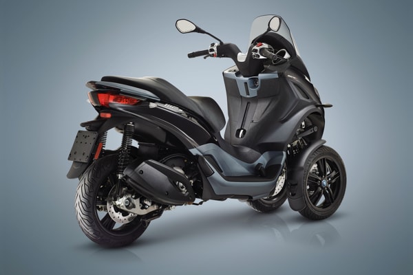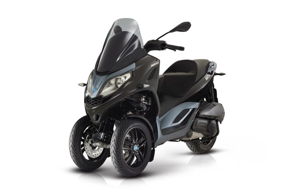 Piaggio MP3 300 hpe. A symbol of metropolitan elegance, Piaggio MP3 300 hpe is available in two brand new colour schemes: glossy Nero Cosmo colour and matt Argento Cometa. Both are matched with five-spoke wheels with matt black finish and a saddle with double covering.