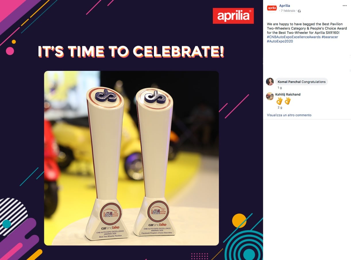 Meanwhile, the Piaggio Group stand - hosting the Piaggio, Vespa, Aprilia and Moto Guzzi brands -was awarded the prize as “Best Auto Expo 2020 motorcycle stand”.