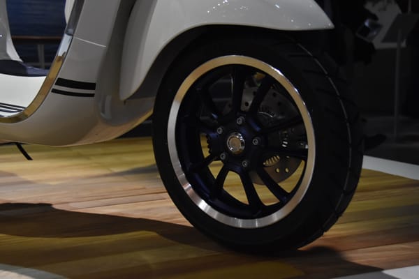 Finally, Vespa GTS Yacht Club and Vespa GTS 300 Super Notte have a modern, high tech, single cylinder, 4-stroke, 4-valve, liquid cooled, electronic injection engine capable of putting out 15.6 kW (21.2 hp) at 7,750 rpm and a maximum torque of 22 Nm at just 5,000 rpm. Such figures ensure prompt acceleration and particularly brilliant performance, making the large frame special version Vespa the perfect vehicle to move about comfortably both in city traffic and for outdoor travel.