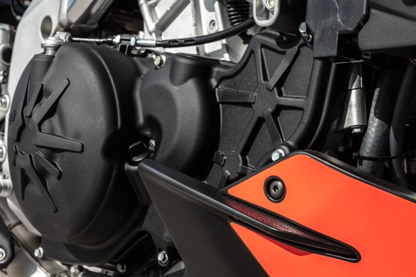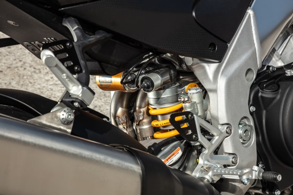 The chassis architecture, a point of reference in terms of effectiveness and feeling, evolves significantly thanks to the arrival of a new and lighter aluminium swingarm with lower reinforcement brace, already seen on the Aprilia bikes that dominated in World SBK, later developed even further for MotoGP. The new component is designed to lower the masses and increase the stability of the rear end in acceleration.