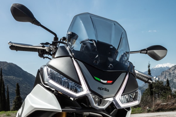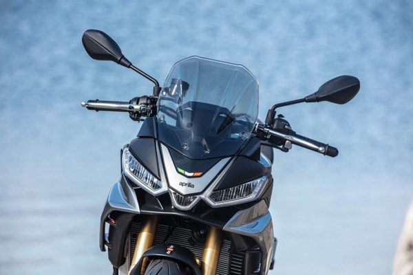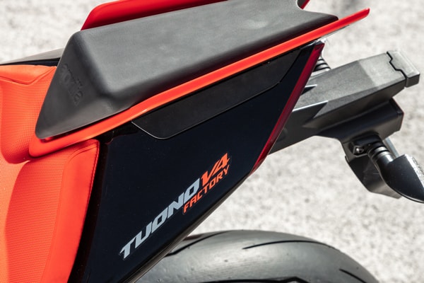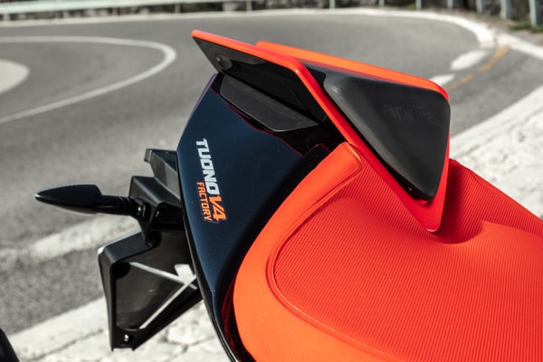 APRILIA TUONO V4 FACTORY IS RAZOR SHARP WITH UNMATCHED PERFORMANCE: NEW LINES, NEW AERODYNAMICS WITH BUILT-IN WINGLETS, NEW MOTOGP STYLE SWINGARM, EVEN MORE ADVANCED ELECTRONICS AND 175 HP TO LEAD THE PACK ON THE ROAD AND ON THE TRACK. THE APRILIA TUONO V4 VERSION UNVEILS ITS VOCATION AS A GREAT TRAVELLER: DIFFERENT ERGONOMICS FOR COMFORT OVER LONG DISTANCES, A NEW SADDLE AND DEDICATED ACCESSORIES DESIGNED FOR TOURING, OBVIOUSLY EXTREMELY FAST.