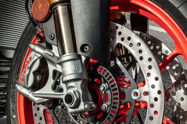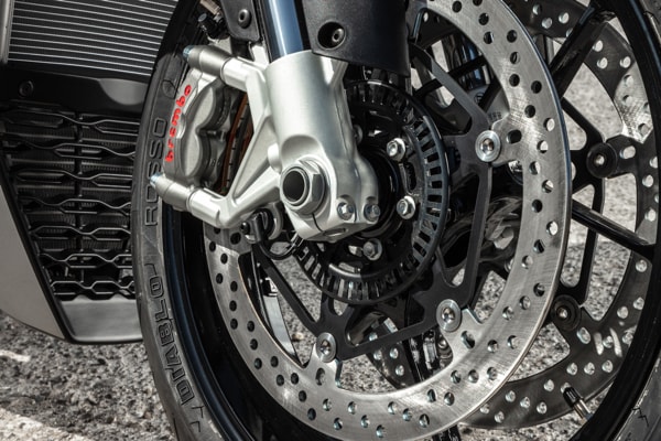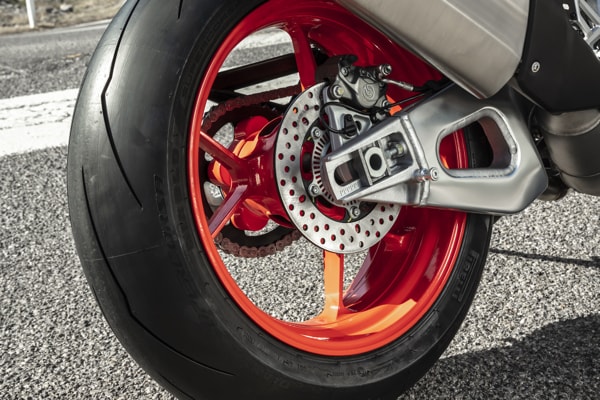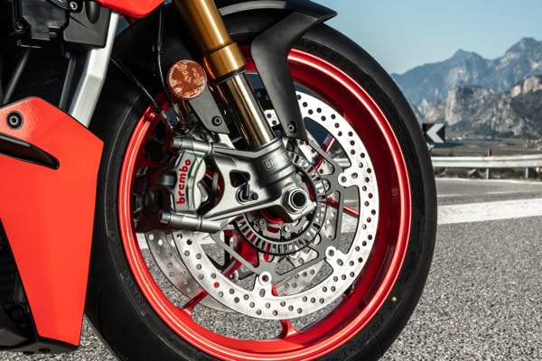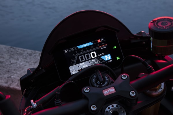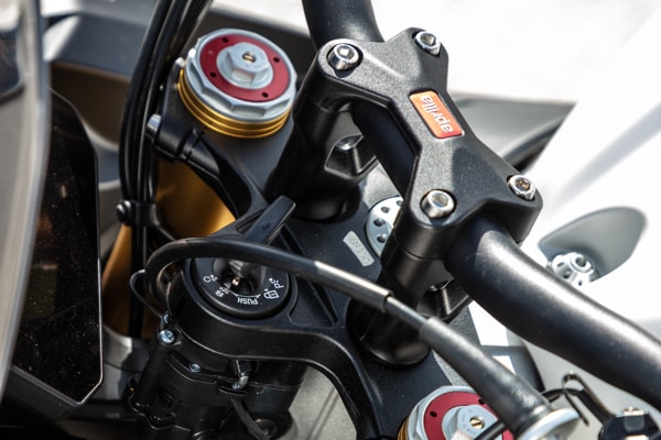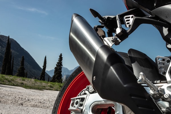 The colour TFT instrument cluster is larger, and the electrical commands are even more effective and intuitive. Thanks to the greater computing capacity of the new Marelli 11MP ECU and the new, six-axis inertial platform, electronic management has been improved. It seems incredible, given the level of completeness achieved but the electronic controls suite has improved even further with the introduction of the adjustable engine brake control. Six different Riding Modes are now available - three for the track (two fully customisable) and three for the road (one of which is customisable). All the rider needs to do is select the appropriate Riding Mode to automatically fine tune Traction Control, Wheelie Control, engine brake, ABS and other adjustable parameters.