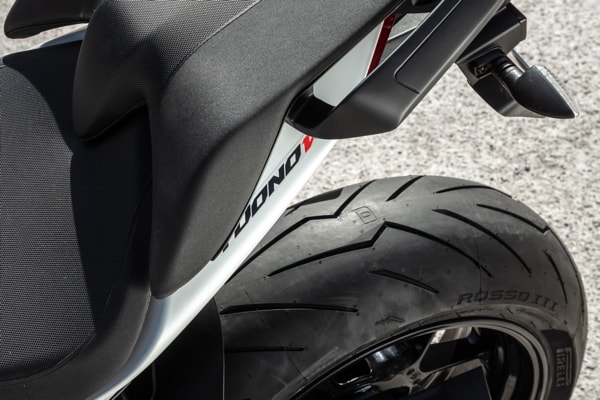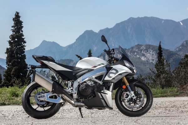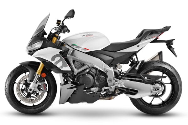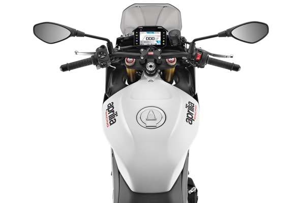 Tuono V4 is available in the Tarmac Grey and Glacier White colour schemes.