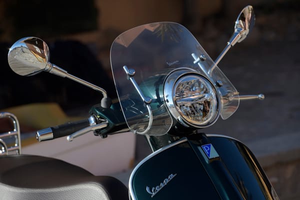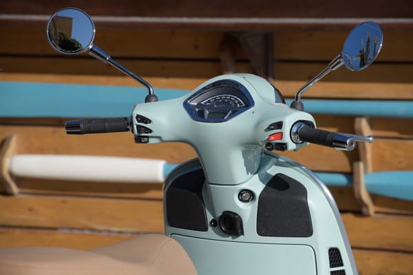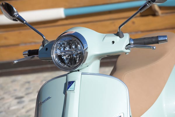The perimeter guard kit is just one of the chrome accessories and guarantees maximum Vespa protection while making a strong aesthetic impact. For an added touch of elegance, an all-Italian brown real leather seat is available. Protection on board is guaranteed by the methacrylate impact and splinter resistant windshield and by the high-quality transparent or smoke top fairing with its compact and sporty lines. The leg cover in thermal material is easy to install and offers year-round riding comfort. The set of accessories is completed with an anti-slip, waterproof rubber mat, outdoor and indoor vehicle covers, a mechanical anti-theft system, inner top box bag, luggage straps and a smartphone bracket. Also available for the Super and SuperSport versions, in addition to the perimeter guards and luggage rack in matte black, are a sports saddle that combines two technical materials and sophisticated aluminium details that enhance the sports look, specifically a top fairing, mudguard crest, rear-view mirrors and a handlebar control component kit, which includes brake levers, hand grips and handlebar tips in billet aluminium.