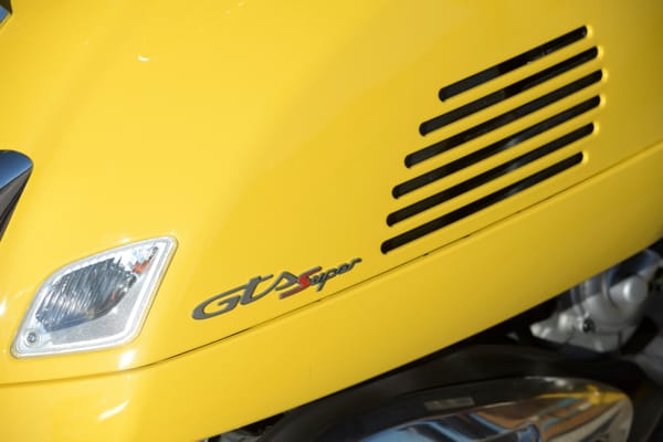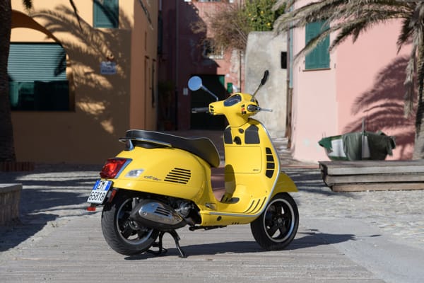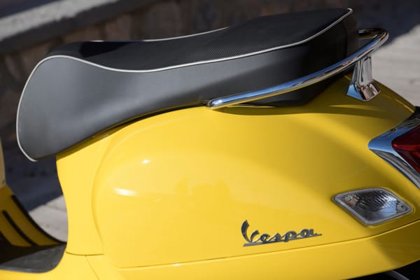 The GTS Super version embodies the typical Vespa values of style, comfort, safety and also outstanding sportiness, taking up the baton from legendary sports models of the past, such as the 1955 Vespa GS 150, the 1965 Vespa 180 SS and the 1985 T5 “Pole Position”. Immediately identifiable by its black rims with diamond-shaped finish and double-upholstered saddle with clasp, it is available in four colours: Innocence White, Polished Black, and Passion Red, as well as the new Summer Yellow.