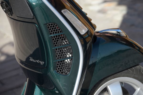 Vespa GTS Touring stands out for its evocative top fairing, which offers added protection without impacting on its elegance (thanks to its reduced size), and its rear luggage rack that, combined with the spacious under-saddle compartment, guarantees excellent load capacity when embarking on those unforgettable holidays, alone or in two. Available in Vignola Red and the new Wood Green, Vespa GTS Touring also features a refined and elegantly upholstered saddle and a dedicated plate on the back of the shield.