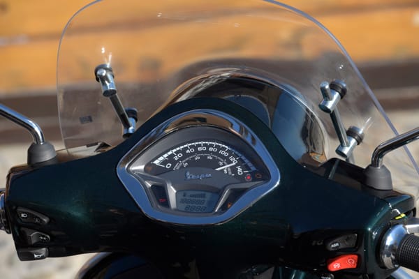 The new Vespa GTS SuperTech represents the top of the Vespa GTS range, the ultimate in sportiness and technology. GTS SuperTech is the first large-bodied Vespa to adopt a fully digital instrument cluster with 4.3" full colour TFT display. The instrument panel, as well as displaying all the classic information such as speed, total and partial mileage, ambient temperature, and fuel level, works as a display for the VESPA MIA smartphone connectivity system.