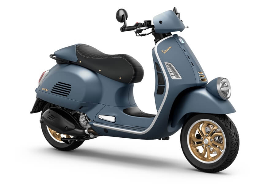The dual-upholstered saddle is also finished with real care: the seat with horizontal heat-sealed stitching is surrounded by double contrasting stitching, while the polished brass rivets represent a further tribute to tradition. The Vespa Gtv Officina 8 also comes with a rigid cover in the same colour as the bodywork as standard, mirroring the typical fairings of Vespa competition models and lending it an even sportier look. The set-up is completed with a host of matte black details and sporty bar-end mirrors, also in matte black.