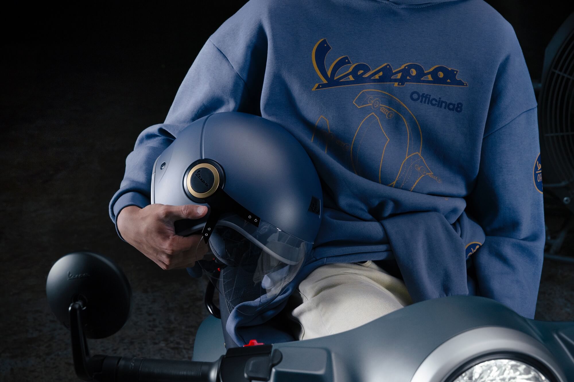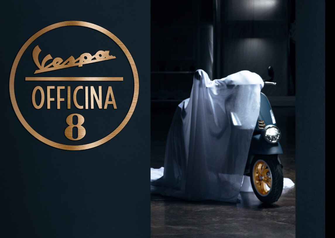 Officina 8. A new edition of the Vespa has landed, with an exclusive charm. The exclusive Officina 8 set-up appears across the most iconic models in the range: the Vespa Primavera - in its 50, 125, and 150 cc versions - which embodies Vespa’s young, carefree spirit, along with the powerful Vespa Gtv 310, with its low headlight and exposed handlebars, which make it the most authentically sporty Vespa of all time. The Vespa Primavera and Vespa Gtv Officina 8 immediately stand out from the crowd with their exclusive Blu Officina 8 colour, an intense shade of industrial blue with a special matte metallic finish which helps to turn back time, evoking the industrial environments of the past: machinery such as vices, lathes and grinding wheels, as well as practical, durable workwear.