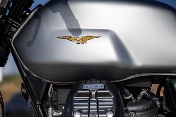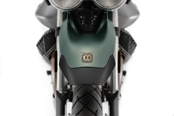 Other distinguishing details are the eagle in a gold finish and the dedicated logo that graphically celebrates Moto Guzzi’s 100 years.
