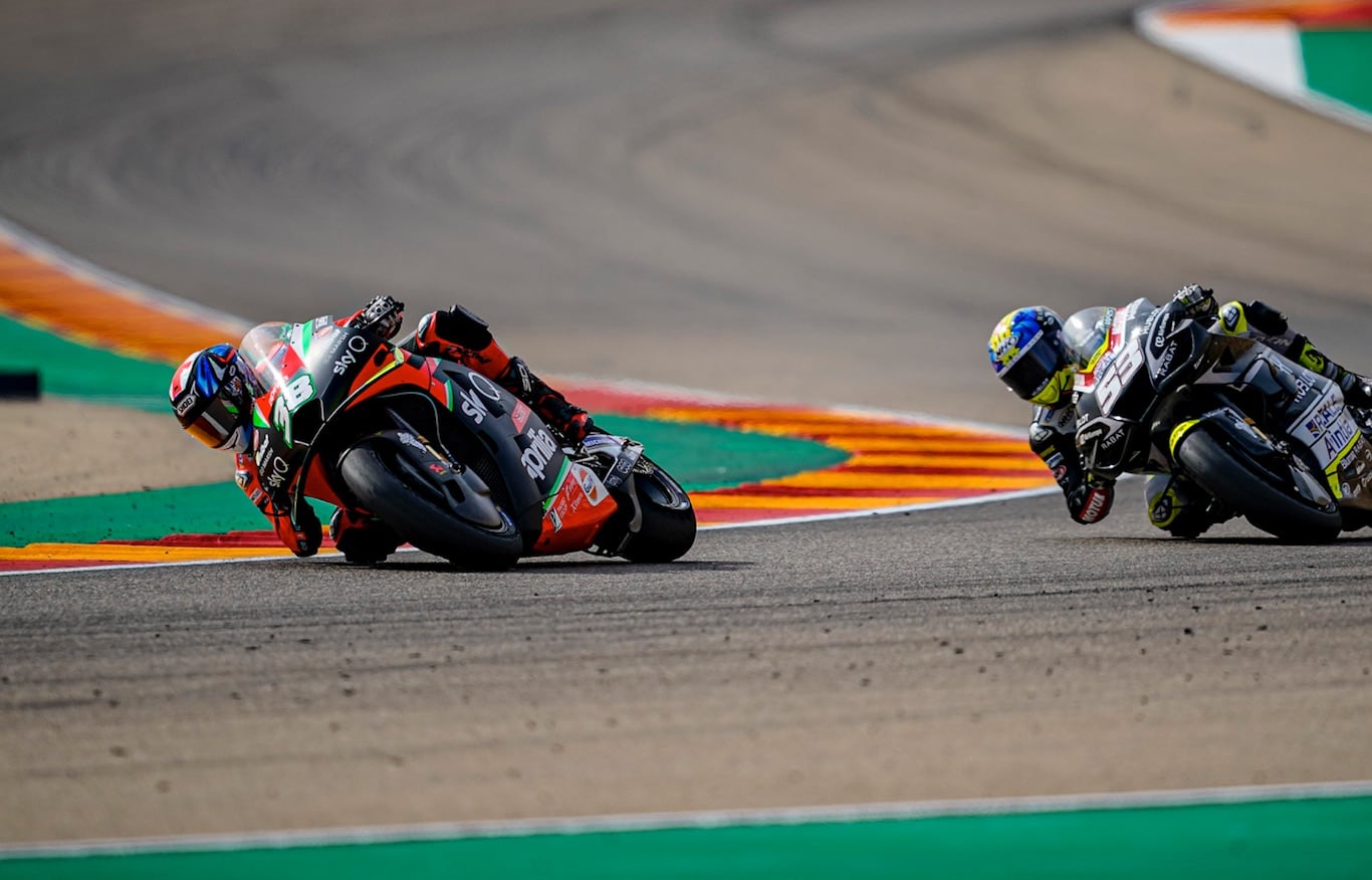 Alcaniz (Spain), 25 October 2020 - The speed Aleix Espargaro’ and his RS-GP demonstrated throughout all the sessions was confirmed in the race today as well. Starting from the thirteenth spot on the grid, Aleix muscled his way into the top-10 hot zones straight away with outstanding passes and a brilliant pace.