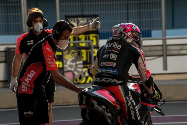 Doha (Qatar), 7 March 2021 - The 2021 MotoGP season started off on the right foot for Aprilia. The new RS-GP, which had already earned the stamp of approval from Aleix and Lorenzo in the Jerez tests, confirmed its improvements compared to the 2020 prototype on the Losail track as well.