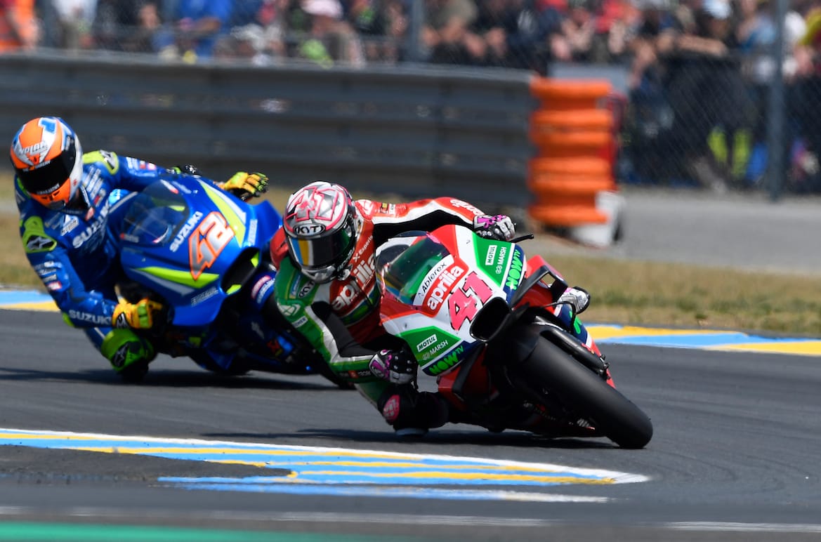 Le Mans (France), 20 May 2018 – A positive result for Aleix Espargaró at Le Mans with his Aprilia RS-GP, finishing ninth after a spectacular battle. After a less than perfect start from the twelfth spot on the grid, Aleix recovered positions in the early phase of the race, establishing himself (thanks in part to a few DNFs in the front ranks) in seventh place. Only an irritating chattering kept him from fending off the attacks of Viñales and Crutchlow in the finale, in any case staying in the top 10, just behind his rivals.