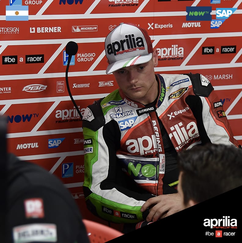 Termas de Rìo Hondo, Argentina, 9 April 2017 –Aleix Espargaró rode a great race that confirmed both his feeling on the RS-GP and the new level of competitiveness Aprilia has reached. However, in the race he was unable to reap the fruits of the excellent work done during the weekend. In what looked like a repeat of the Qatar race, with Aleix Espargaró catching up to his rivals in the second part of the race, a sliding crash in the 15th lap took the Spanish rider and his RS-GP out of the running.