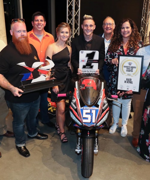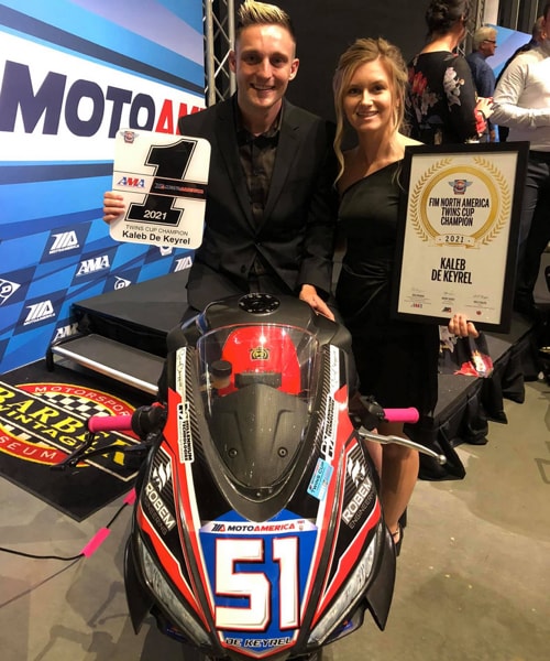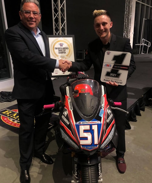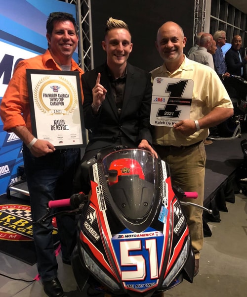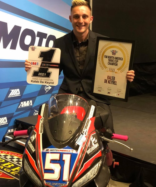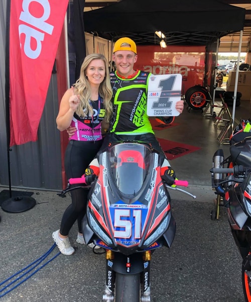 September 2021 - The title was already in the bag after the penultimate round of the championship, considering the gap the champion, Kaleb De Keyrel, had built up during the 2021 season of the MotoAmerica championship, Twins Cup class. The combination of Kaleb and the new Italian twin-cylinder Aprilia RS 660 dominated the season, finishing with 234 points: 68 more than the closest rival.