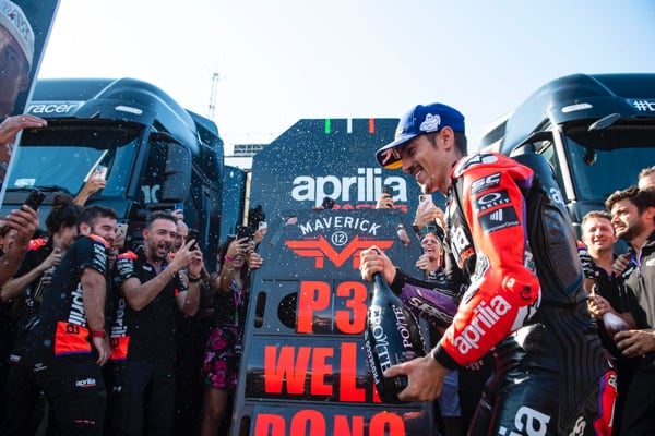 Misano Circuit (Italy), 4 September 2022 - Maverick Viñales took third place in the MotoGP World Championship race in Misano. Maverick shot off the grid from the start along with the group that led for the majority of the race, moving into second place for a good number of laps during the central part of the race, seemingly with the potential to make a play for the win.