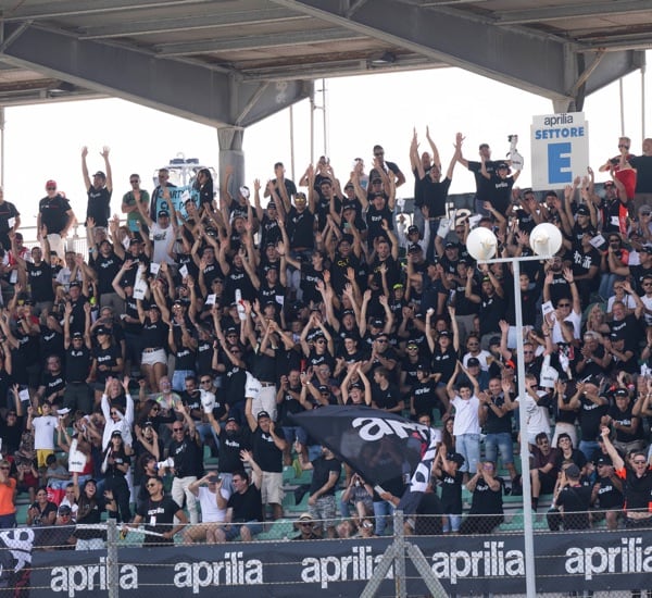 In Misano, dedicated Aprilia grandstand stormed by fans, with a series of advantages dedicated to them: covered grandstand with large screen; “Aprilia Crew kit” fan kit (photo of Duke Tower posted on Aprilia facebook: “Thank you, you are fantastic!”, is his comment after attending an exciting GP); and again, free Aprilia car and motorbike parking; free wardrobe for technical clothing.