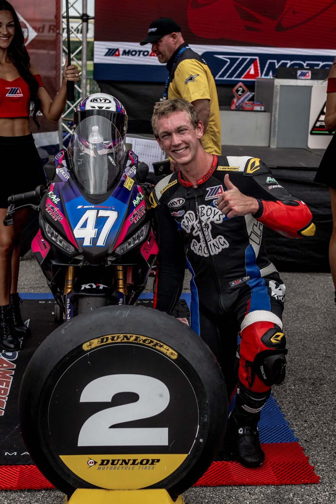 Other Aprilia riders in the top 10 included Brown (fifth), Cunnison (sixth), Andrew Weyh (Weyh Racing, eighth), and Zachary Foster (Moto-Ace Racing, 10th).
