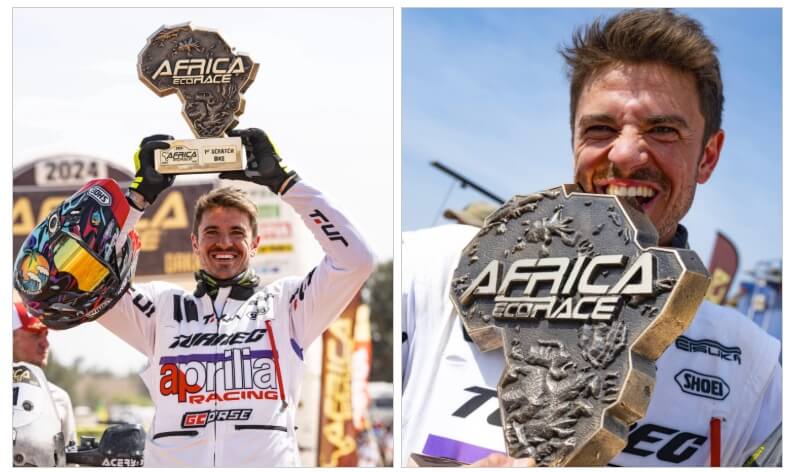 In 2024, victory in the M6 category at the Hellas Rally Raid in Greek was added to this historic result, as well as victory in the Baja Aragón in the category reserved for multi-cylinder bikes. He also became champion in the Motorally G-1000 category, making history on the Rapino trial where, for the first time ever in the championship, a twin-cylinder finished on the top step of the overall standings.