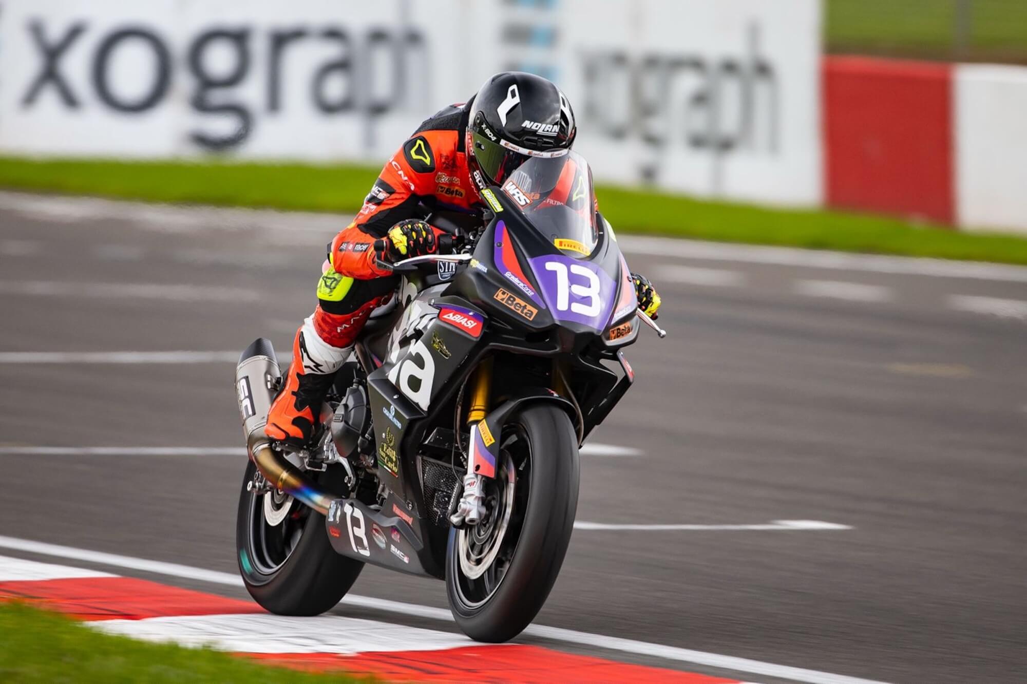 EDOARDO COLOMBI, SECOND IN THE RACE, REGAINS THE LEAD IN THE SPORTBIKE CLASS AT DONINGTON PARK