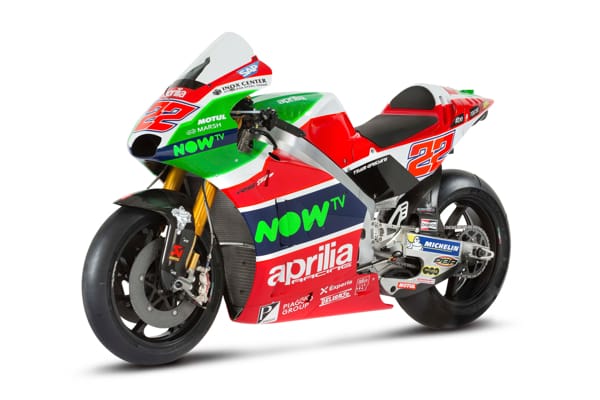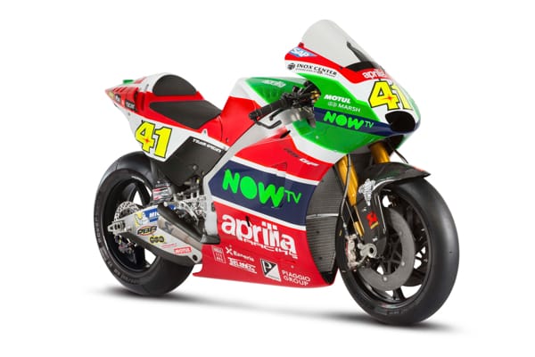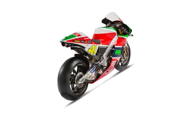| Engine: | Aprilia Racing narrow V4, 81mm bore, counter rotating crankshaft, timing with pneumatic valve recall system. |