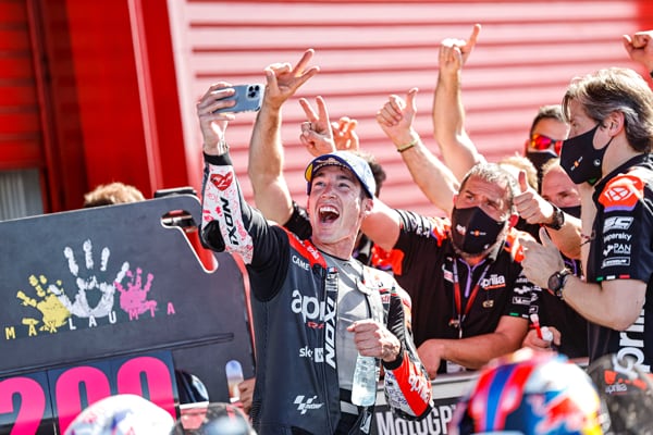 A historic day that also crowns Aleix Espargaró on the day of his 200th GP in the premier class. As a true team captain, Aleix was the star of a weekend to remember, made up of a pole position, the win, and the fastest lap in the race. An unmistakeable sign of the outstanding level of competitiveness the 2022 Aprilia RS-GP has reached.