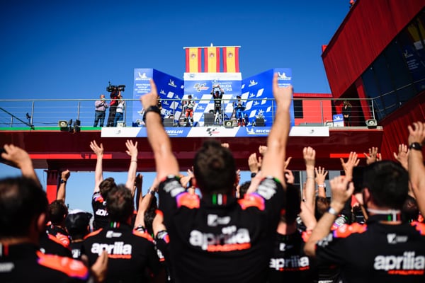I didn't lose heart. I tried changing the electronic settings several times to overcome these problems and, in the end, I managed to improve. I was faster than Martín by a few tenths, but it wasn’t at all easy to overtake him, partly because it was a new situation for me. I had never been in the position to battle for a win in MotoGP. It was truly exciting, especially the last lap. I am extremely happy for Aprilia, for me, and for my family. We deserve it. I would like to thank again all the team, who is working hard in Noale and the Piaggio Group for the support. Now we’re leading in the championship, but we’ll just try to take advantage of this positive moment, continuing to have fun and keeping our feet planted firmly on the ground”.
