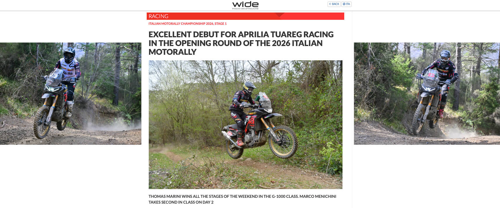 The final outcome for the Aprilia Tuareg Racing Team at the end of the opening round of the TT Rally Cup is extremely positive: the Tuareg Rally has confirmed itself as a winning machine, capable of delivering high performance and outstanding reliability in all conditions. The dominance in Spain underlines the competitiveness of the Noale-built twin-cylinder and the excellent work of Team Guareschi.