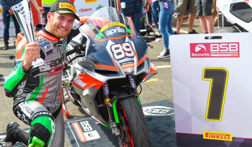 Last weekend at Knockhill Racing Circuit, Fraser Rogers (25 years old from Swindon, UK) rode his Aprilia RSV4 1100 to victory in Race 2 of the Superstock category of BSB, the British national championship (which is celebrating 25 years of operation, 1996-2021). This is a significant achievement for the Team IN Competition rider, now third in the overall riders championship standings and a contender for the title.