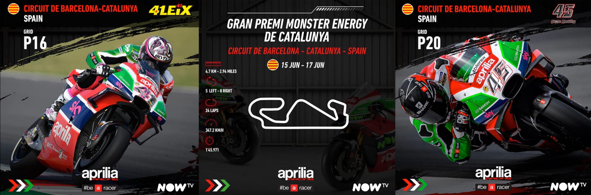 ALEIX ESPARGARO' (bike no. 41): "One of my most difficult weekends. Usually on this track I am able to be competitive, but not this time. We made some significant changes to the RS-GP compared to yesterday and, to be honest, I felt a lot better, both in warm up and in the race. Unfortunately, everything was compromised by the qualifiers yesterday and the penalty this morning just added to that. I started very far back and I recovered a lot of positions straight away, but unfortunately then I had a stupid sliding crash on a turn where I did not expect that I could have crashed.