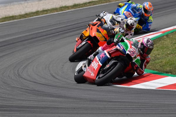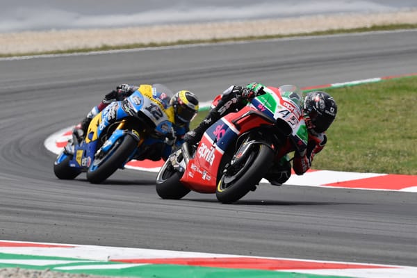 With a decidedly improved feeling astride his Aprilia compared to Friday and Saturday, it only took him a few laps to catch up with Redding, Bautista, Rins, Pol Espargaró and Nakagami. However, shortly after overtaking the Japanese rider, he lost the front end and wound up in the gravel.