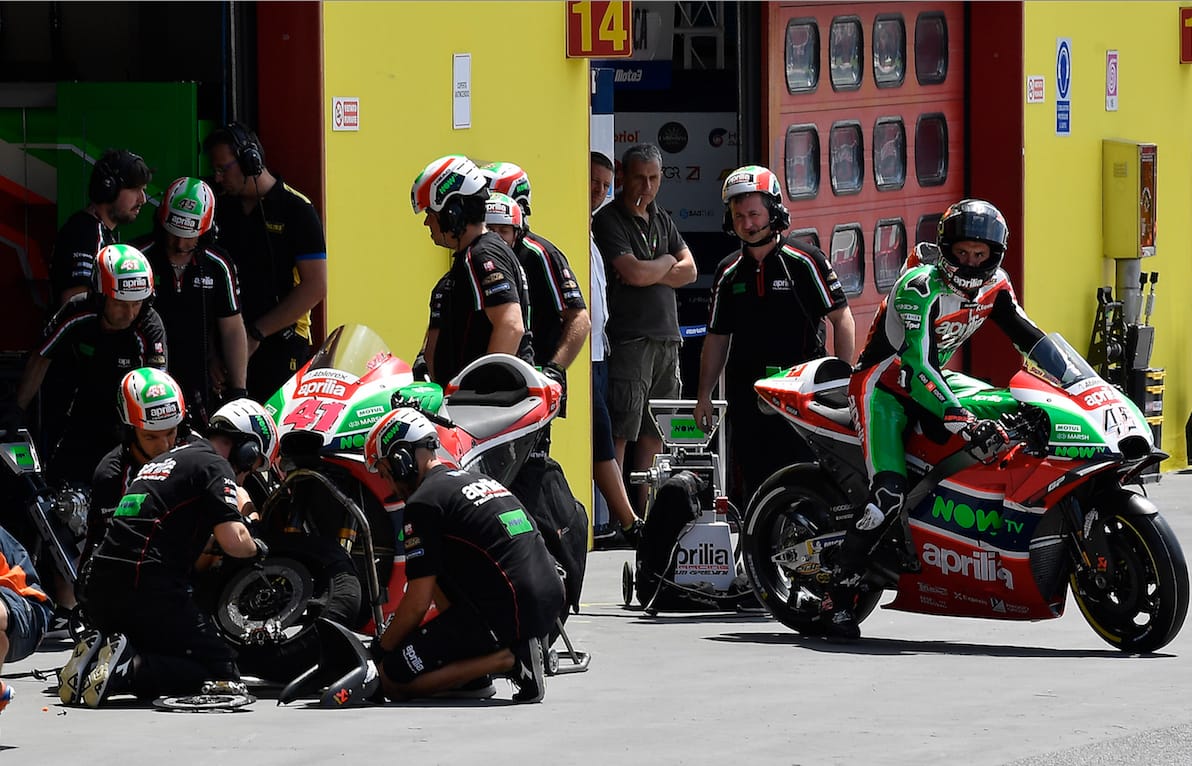 Mugello (Italy), 3 June 2018 – With a good performance, Aleix Espargaró was making up for a difficult weekend that was characterised by ups and downs. After battling with the best all the way through FP3 on Saturday, Espargaró had ended up in the last spots on the starting grid, forced to ride in the qualifiers astride the second bike.