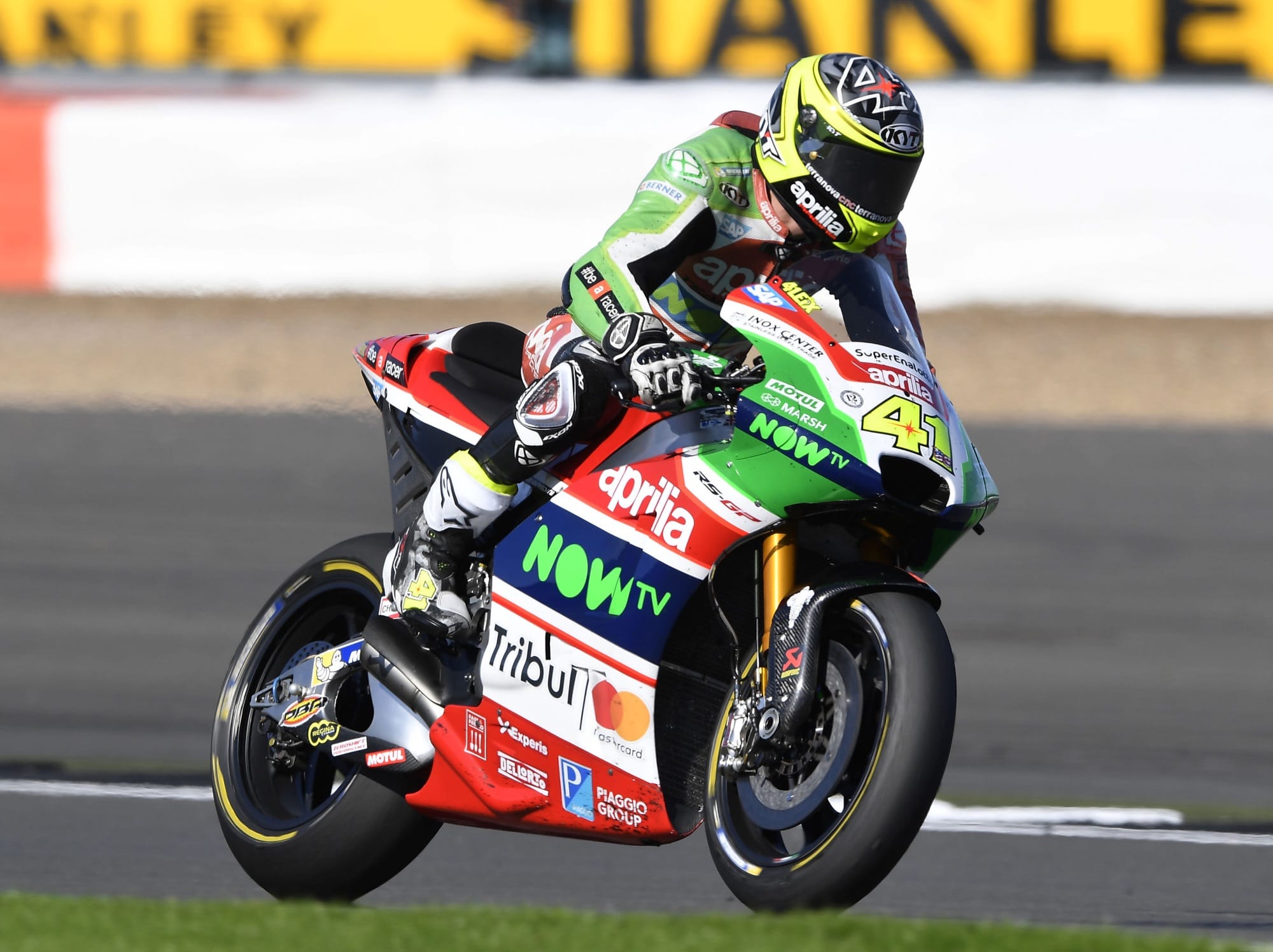 Silverstone, 27 August 2017 – The entire Silverstone weekend was conditioned by physical problems for Aleix Espargaró, suffering from an injury that in any case did not keep the Spanish rider and his Aprilia RS-GP from proving once again to be competitive. Despite the few laps turned during practice, the number 41 Aprilia rider's performance was excellent, as is confirmed by the spot on the third row earned in qualifying. Unfortunately, the Spaniard had to deal with the pain during the race and that penalized him particularly in the early phase. With a full fuel tank, Aleix had difficulty in the quick direction changes that are so typical of the English track. Lap by lap the situation improved, so much that the Spanish rider was riding his RS-GP into an unhoped-for top-10 spot. The technical problem that stopped him just a few turns from the end does not overshadow the good performance demonstrated at Silverstone, both in terms of the rider's immense efforts and the speed of the Italian bike.
