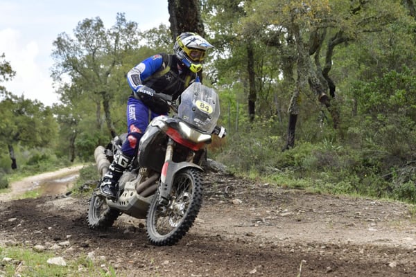 Italian Moto Rally & Raid TT Championship 2022, stage in Sardinia: the rider Francesco Montanari astride the Guareschi brothers' Aprilia Tuareg 660 Factory by GCorse.