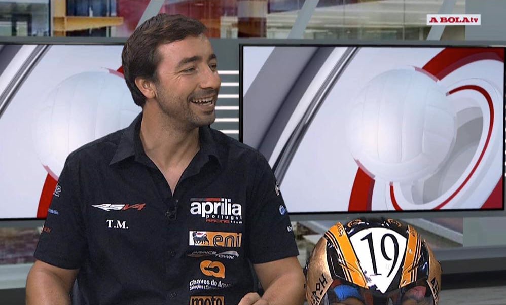 Tiago Magalhães during an interview with the Portuguese TV station A BOLA.tv on the eve of the CNV Moto 2019; he is the first on the right in the photo below, with his fellow top-three finishers.