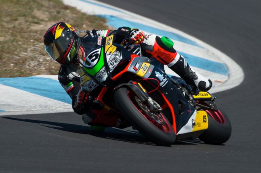João Diogo Silva # 15 experienced some difficulty in finding the right setting for his Aprilia RSV4 RF, considering also the possible tyre choices for the race, managing to beat his personal record in practice, when he lapped in 1.44 and later in 1.45 in qualifying, securing him P10 for the final Superbike class race this weekend. After a less positive start, Tiago Magalhães managed to recover and join the lead group, until he crashed on turn 1 on the 6th lap, which made him opt for a low risk strategy.
