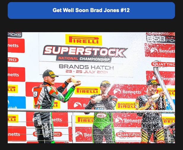 It was shortly after in the British Superbike race that unfortunately on lap one Fraser’s best friend and road cycling partner, Brad Jones had an accident on the last corner putting a halt to racing for some time. Fraser and the team wish to send their condolences to the family, all the PR