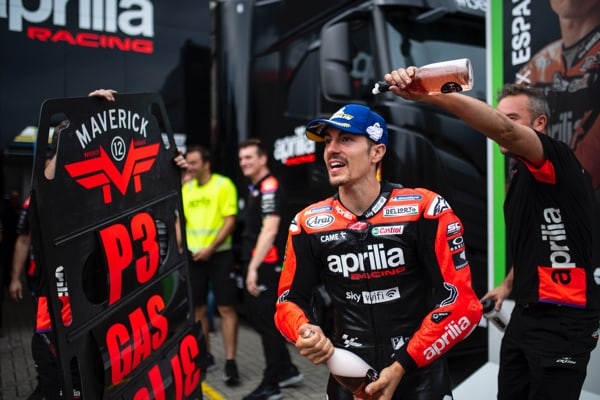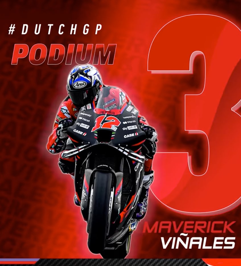 Assen (Netherlands), 26 June 2022 - A brilliant day for Aprilia Racing in Assen for the eleventh round of the season. Maverick Viñales took home his first podium astride the RS-GP, fending off Miller’s attacks in the finale. This third place arrived today after consistent progress which has seen Maverick gaining confidence on his Aprilia over the last few races.