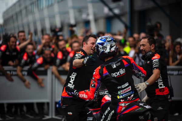 Maverick Viñales (bike no. 12): “I am super happy! We worked hard, without ever giving up, and today we had the first reward for my efforts and Aprilia’s. We never stopped believing because we knew that our time would come. The only thing missing was to put all the pieces in the right place during one weekend and today, despite starting from behind, we succeeded.