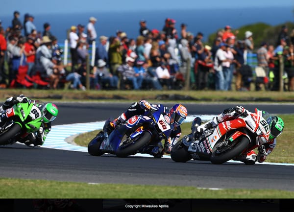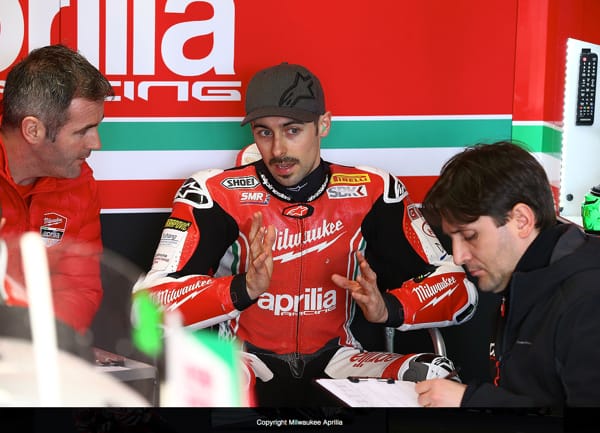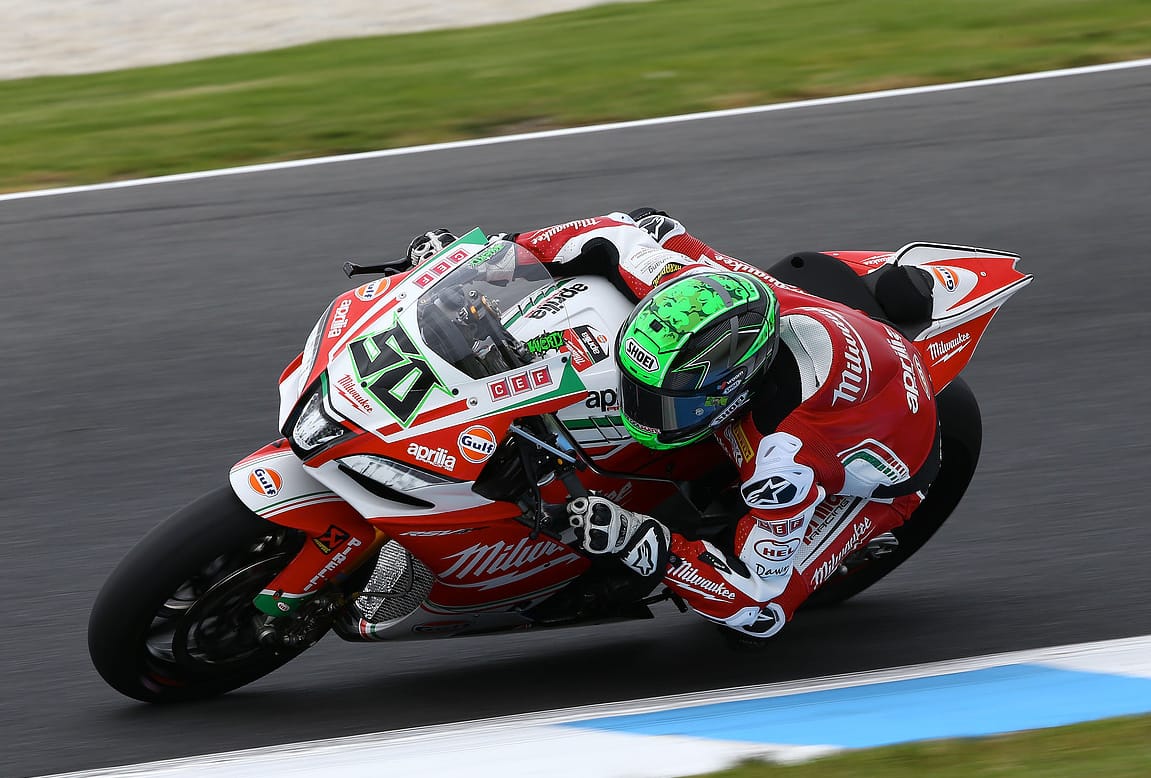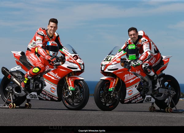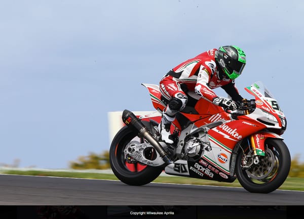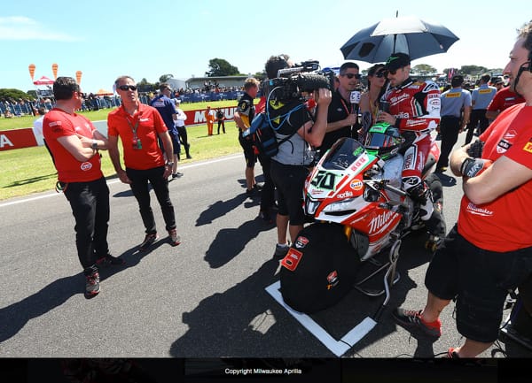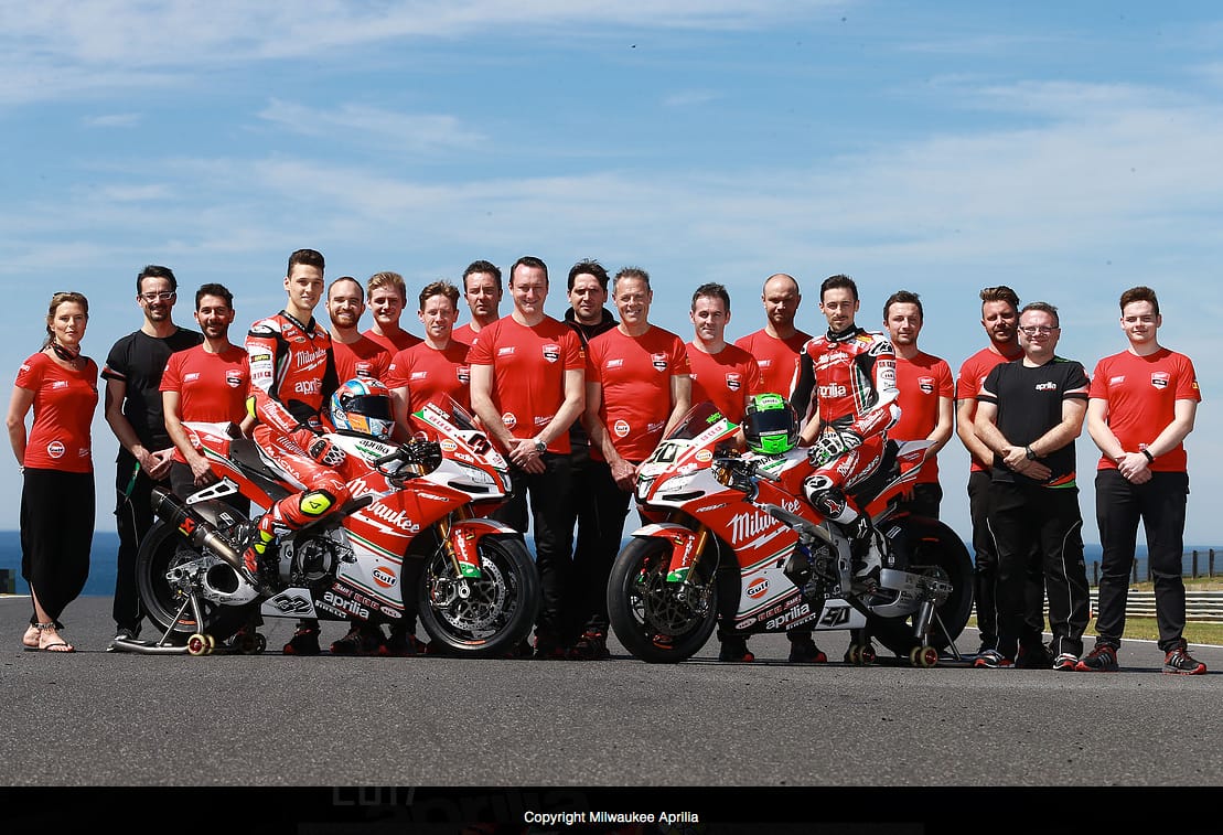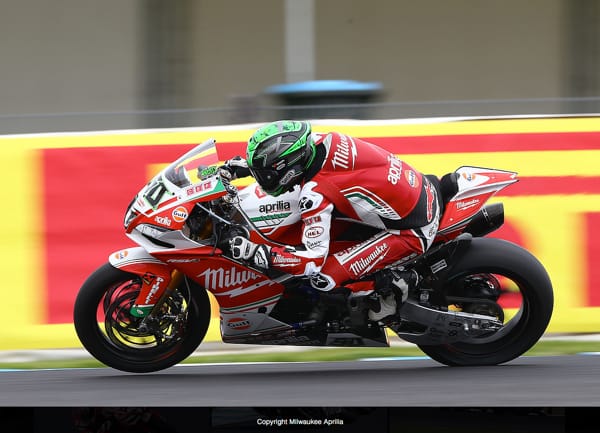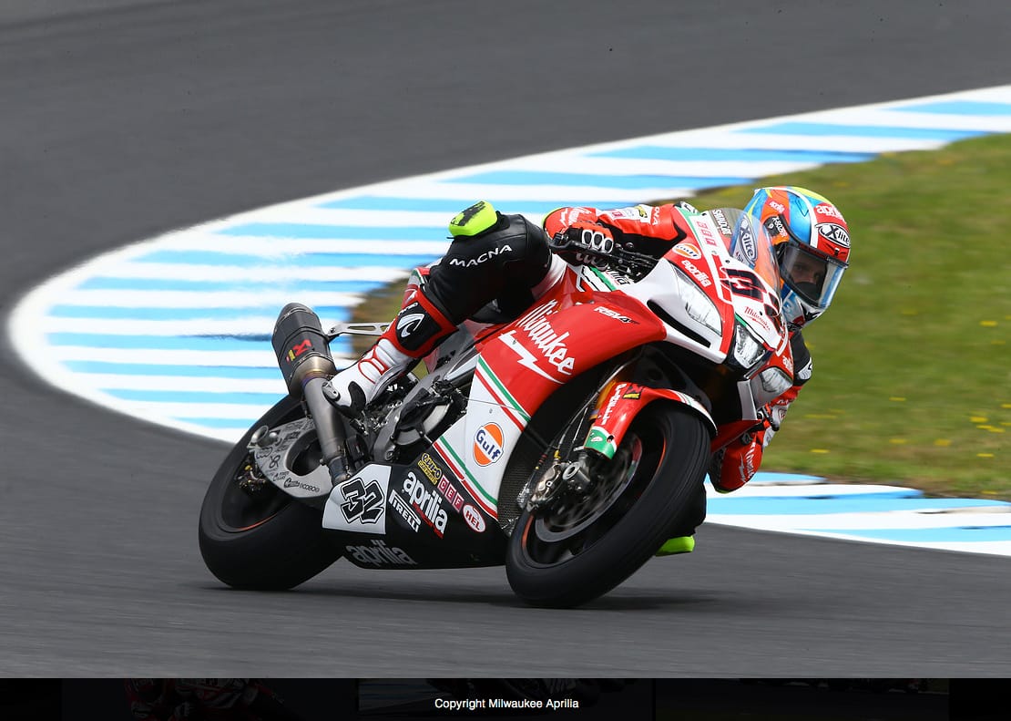 Phillip Island (Australia), 27 February 2017 – Milwaukee Aprilia scored double points finish in Race 2 at Phillip Island, after a tough weekend at Round 1 of the series. Under new regulations for 2017, which saw a reverse grid for the first time in World Superbikes, riders Lorenzo Savadori and Eugene Laverty started 11th and 5th respectively. They were in the thick of the action from lights out, with both riders quickly progressing on the new Aprilia RSV4 RF.