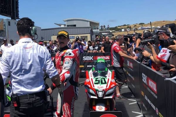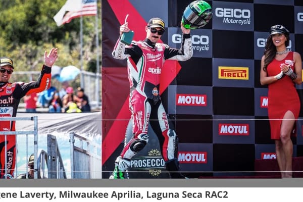 Laguna Seca (United States of America), 24 June 2018 β Race 2 at Laguna Seca saw Eugene Laverty bring home the first WorldSBK podium for Milwaukee Aprilia with a thrilling ride to third place. The result was Eugene's first podium in the championship since 2014, and further proof of the progress the team has made towards the front of the field in 2018.